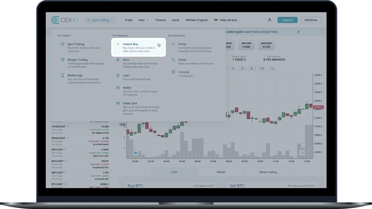 With the Instant Buy Service on CEX.IO, you can instantly buy crypto by following the simple steps below: