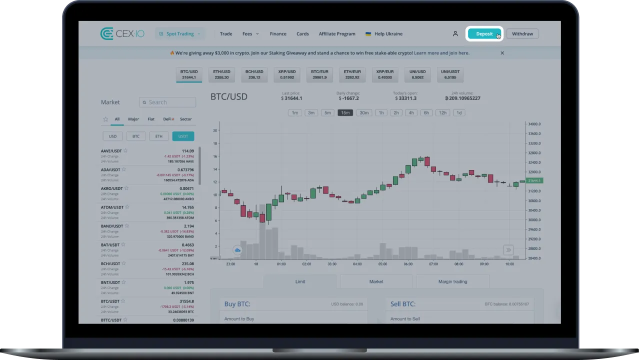 If you do not have assets on your CEX.IO exchange account now, you can deposit your crypto holdings from your wallet or other exchange account(s) to start earning rewards on CEX.IO Savings. Just follow the three simple steps below: